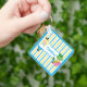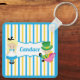 Corta Alicia en el llavero de la tierra de las maravillas para un amante de los libros. La niña pequeña Alice con su vestido azul y el sombrerero loco se sientan en las rayas amarillas azules del bonito. Personalizar este regalo caprichoso con tu nombre u otro texto.