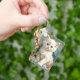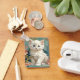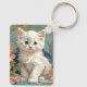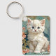 Keychain con un gato blanco al estilo de Alphonse Mucha! Este gatito de ojos azules y esponjoso posa con flores rosadas y mantas azules. ¡Un regalo fabuloso para los amantes del gato y de los coleccionistas Art Nouveau!