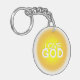 Amar a Dios Amar a Dios un brillante texto soleado simple y claro que solo quiere a Dios. Colores de diseño en blanco, amarillo, naranja, dorado. Love God Sunny Golden Yellow Round Keychain, imagen de ambos lados. Dios, amo a Jesus.