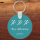 Introduzca las iniciales o un nombre u otro texto en el cuadro, para crear el regalo perfecto de relleno de existencias para cualquiera que disfrute de la ejecución. Este anillo de tecla de botón redondo tiene el pictograma de tres corredores, en blanco sobre un fondo azul inteligente (o haga clic en el botón Personalizar para elegir un color diferente).