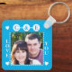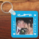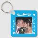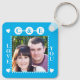 Cadena de teclas de doble lado, idea de regalo de anillo de claves. Reemplace la foto por delante y por detrás. El amor siempre. Te quiero. Añadir iniciales. Azul y blanco con corazones amorosos. Por el que amas.