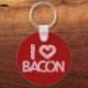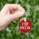Bacon diciendo con letras creadas a partir de tiras de tocino. Color de fondo personalizado. Texto personalizado en la parte posterior.
