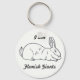 Este llavero presenta un dibujo a mano de un conejo gigante flamenco.