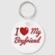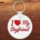 Cadena de llaves con el corazón de mi novio en texto rojo 3D. Las cadenas de clave redonda y cuadrada están disponibles en varios estilos.