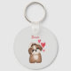 El frente de texto personalizado y la parte posterior resaltan esta cadena de claves de raza de perro shih Tzu.