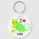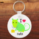 Rata verde suave en la cadena de claves con el mensaje I Heart Rats.
