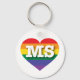 Esta cadena de claves presenta un corazón con un diseño de orgullo arcoiris y las letras mayúsculas, en negrita y blancas, MS, la abreviatura oficial de Misisipi, el estado de Magnolia. Muestra tus verdaderos colores, apoya el matrimonio igualitario y celebra el orgullo gay.