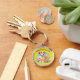 Un llavero con una foto de un cachorro adorable sentado entre las flores. Se ve muy feliz de estar rodeado de flores y mariposas. El regalo perfecto para dar a los que aman los perros perritos. Contiene contenido generativo.