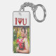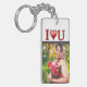 Personalizado de la cadena de claves del el día de San Valentín fotográfico con I heart U en texto rojo 3D. Las cadenas de clave redonda y cuadrada están disponibles en varios estilos. Genial para la familia y los amigos o para esa persona especial.