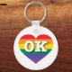 Este llavero presenta un corazón con un diseño de orgullo arcoiris y las letras mayúsculas en negrita, blancas, OK, la abreviatura oficial de Oklahoma, el estado anterior. Muestra tus verdaderos colores, apoya el matrimonio igualitario y celebra el orgullo gay.