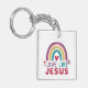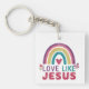 Lleva un recordatorio de fe y amor dondequiera que vayas con esta tierna y personalizable cadena de claves. Esta cadena de claves, con la frase "Amor como Jesús" y un diseño colorido de arcoiris, corazón, flor y mariposa, es una mezcla perfecta de inspiración y encanto. La parte posterior es de un color rosa agradable, lo que aporta un suave contraste, y puede personalizarse con su nombre o sus iniciales para un toque único.