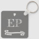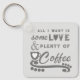 Cadena de llaves de doble lado, idea de regalo de anillo clave para un amante del café. Añadir iniciales en la parte posterior. Amor y mucho café. Gris oscuro y pálido con corazones amorosos.