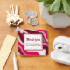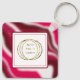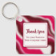 Añada el logotipo de su negocio y el nombre de su negocio a esta festiva cadena de teclas rayada roja y rosa y blanca. "Gracias" escrito en tipografía moderna es editable. Las rayas texturadas de caña de caramelo son mi diseño original. Tomé los colores vibrantes de una fotografía original de una flor peony. El patrón de caramelos de vacaciones de los Navidades y el brillo rodean el texto simple sobre fondo blanco. Personalice este llavero para dar como regalo promocional a sus clientes esta temporada de vacaciones Navidad.