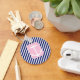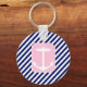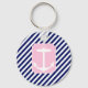 Este diseño adorable y preppy tiene una silueta de ancla blanca en un marco rosa claro sobre un fondo de rayas azul marino diagonal.