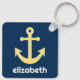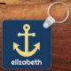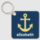 Llavero Ancla náutica con patrón de cheurón amarillo de la
