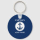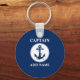 Nautical Anchor & Rope Capitán Añadir nombre o nombre de barco Blue Keychain