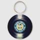 La imagen de un disco vinílico personalizado con su nombre o marca especial, el mapa del mundo (se puede reemplazar con su logo) y cita... gran sugerencia para el músico de no perder sus llaves.