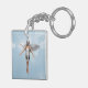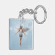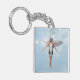 Representación digital 3D de un ángel blanco lindo sobre fondo azul del cielo