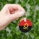 La bandera de Angola ha sido ajustada hábilmente al fob circular de esta cadena de claves. Un práctico recordatorio de la herencia angoleña.
