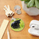 Un solo ángulos negros separado del resto de la manada de ganado, se enfrenta a su trasero a la cámara y da la vuelta a su cabeza para una fotografía de retrato. La hierba alta en tonos amarillos y verdes crea un agradable fondo contra el color oscuro de la vaca. Personalizar cualquier artículo con tu propio dicho gracioso, o información de negocios de ranchamiento de ganado.