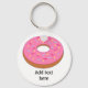 ¿Amas a los donuts? Personalice este divertido diseño de cadena de claves con su gráfico de anillos rojos completo con recubrimiento de azúcar rosa. Solo agrega tu propio lema o nombre.