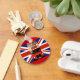 Anillo de claves de souvenirs con bandera británica y el viejo autobús londinense. El mismo diseño también está disponible como tarjetas de felicitación, postales, insignias, imanes, Pegatinas, camisetas, Gorras, aprones, llaveros. No deje de visitar la tienda de artículos para ver todo lo que se ofrece. Todo el trabajo de ©Caroline Webb. ¡Envíame un mensaje si te gustan los productos! No olvides que puedes PERSONALIZAR estos productos - cambia de color, cambia o agrega texto, ¡es todo tan fácil!