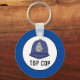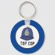 Un regalo divertido para el mejor policía o agente de policía. Fob con llave de regalo para un policía de policía de policía superior. Anillo de claves de diseño de casco policial. Ilustracion de casco de policía en un anillo de llaves.