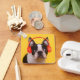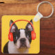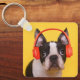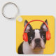 Esta linda foto de Getty Images muestra un Boston Terrier con auriculares rojos.