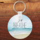 Hermosa playa de arena, olas azules y cielo tenue con las palabras "solo respira". Personaliza con tu nombre en la parte posterior.