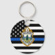Línea Azul delgada Keychain del Departamento de Policía - Bandera estadounidense con colores de bandera de la policía, diseño moderno negro y azul. Personalizar con el logo de su departamento, y personalizar con el nombre de los oficiales de policía. Esta cadena de claves personalizada para la aplicación de la ley es perfecta para los departamentos de policía y los oficiales encargados de hacer cumplir la ley, ideas promocionales o regalos a los oficiales de policía. DERECHOS RESERVADOS © 2020 Judy Burrows, Black Dog Art - Todos los derechos reservados. Cadena de claves de cumplimiento de la ley con logotipo de Personalizado del Departamento de Policía