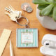 Este gran tamaño premium de boda a rayas azules y blancas gracias cadena clave con acentos de desplazamiento dorado coincide con la invitación de boda que se muestra a continuación. Todo el texto es personalizable. Sería un buen regalo de agradecimiento para todas las personas que ayudaron a que tu día de boda fuera más especial, como tu fiesta de bodas, la florista, la cafetería, la solista, etc.