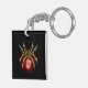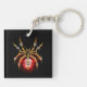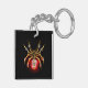 Araña mecánica, de vapor punk con oro, engranajes de latón y una lámpara de vidrio roja sobre un fondo negro. Estilo Steampunk.