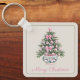 Estos llaveros festivos elegantes presentan un hermoso árbol de Navidad rosa y verde en una maceta decorativa Chinoiserie. Personalice el mensaje con su elección de texto especial. ¡Genial para bolsas de regalo!