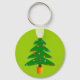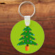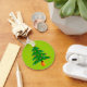 Ilustracion de un verde y brillante árbol de Navidad. Una estrella dorada se sienta en la parte superior y el árbol está decorado con motivos rosas, azules y naranjas.