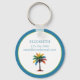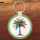Este bonito keychain redondo personalizado cuenta con una palmera de colores vivos en tonos acuáticos de azul, verde, amarillo y naranja. Personaliza la parte posterior con tu elección de nombre y texto.