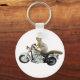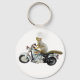 Una ardilla monta una motocicleta de juguete, la cola sopla en el viento. Tecla divertida.