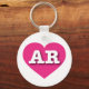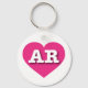 Este llavero cuenta con un vibrante corazón rosado caliente que contiene las letras negrita, blanca y alta del funda AR, la abreviatura oficial de Arkansas, el estado natural.