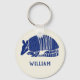 Mantén tu llave segura o añade un divertido colgante a tu mochila con este keychain personalizado con un ilustracion de un armadillo de color azul marino contra un fondo de color crema. Hace un pequeño y divertido regalo para los fanáticos de los armadillos.