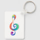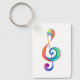 Tecla musical extraída de capas multicolores de colores arcoiris sobre fondo blanco.