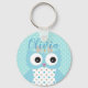 Adorable arte de búho y patrón de puntos de polka en la cadena de claves personalizada de los chicas.