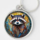 Elegante obra de arte en vidrio pintado que presenta el retrato de un mapache, meticulosamente diseñado con tonos vibrantes de azul y ámbar, simbolizando la naturaleza y la habilidad artística combinadas. Una pieza cautivadora que muestra la intrincada artesanía y la apreciación de la vida silvestre