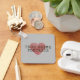 Una cadena de claves para los amantes de los podcast verdaderos del crimen en todas partes, con un corazón de huellas digitales rojas con texto de estilo de máquina de escribir.