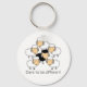 Graciosa cadena de claves de ovejas negras. Un grupo de ovejas blancas con caras rosadas y orejas grises rodean a una oveja negra lana, también con cara rosada y orejas grises. Debajo una leyenda "atreverme a ser diferente" en letras negras.