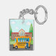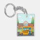 Un autobús escolar y su chofer afuera de una escuela. Este diseño parece realmente efectivo en esta cadena de claves