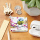 Cadena de llaves con una sorprendente fotografía del pequeño pájaro más lindo encaramado en una rama cubierta de flores rosas y hojas verdes. El pájaro tiene la cabeza azul y el cuerpo amarillo con una cara muy dulce. Adorable.