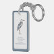Esta hermosa cadena de teclas de doble cara y personalizada presenta un ave de garza azul costera en tonos acuáticos de azul y gris sobre un fondo blanco con borde azul a juego. Personalice con su elección de nombre y texto especial en la parte delantera y trasera. Excelente para bolsas de regalo y favores de fiesta.