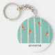 Un keychain personalizado con un ilustracion de abedules con pájaros naranjas sentados en sus ramas. Fondo de color verde retro.