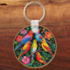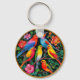 Llavero Aves vibrantes encaramadas en ramas floridas