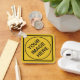 Signo de advertencia amarillo con forma de diamante. imagen personalizado. Texto personalizado en la parte posterior.