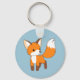Pequeño zorro lindo con orejas grandes está parado con su cola buscada hacia arriba y mirando hacia el lado.